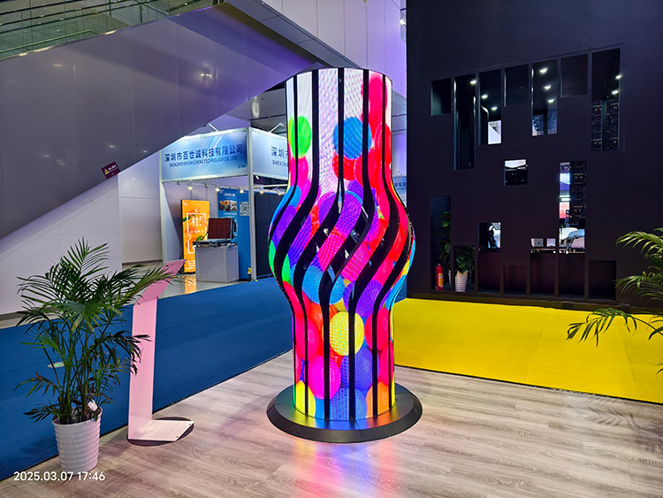 The spiral LED screen is a standardized product. The shape of a vase and the artistic atmosphere of spiral DNA add a sense of modern design art to the interior space, creating a romantic atmosphere. It is plug-and-play. The product was first released last year, with traffic exceeding hundreds of thousands on domestic and foreign social media platforms, and was also praised by domestic and foreign customers on site. It is widely used in application scenarios such as art galleries, science and technology museums, and large hotels.